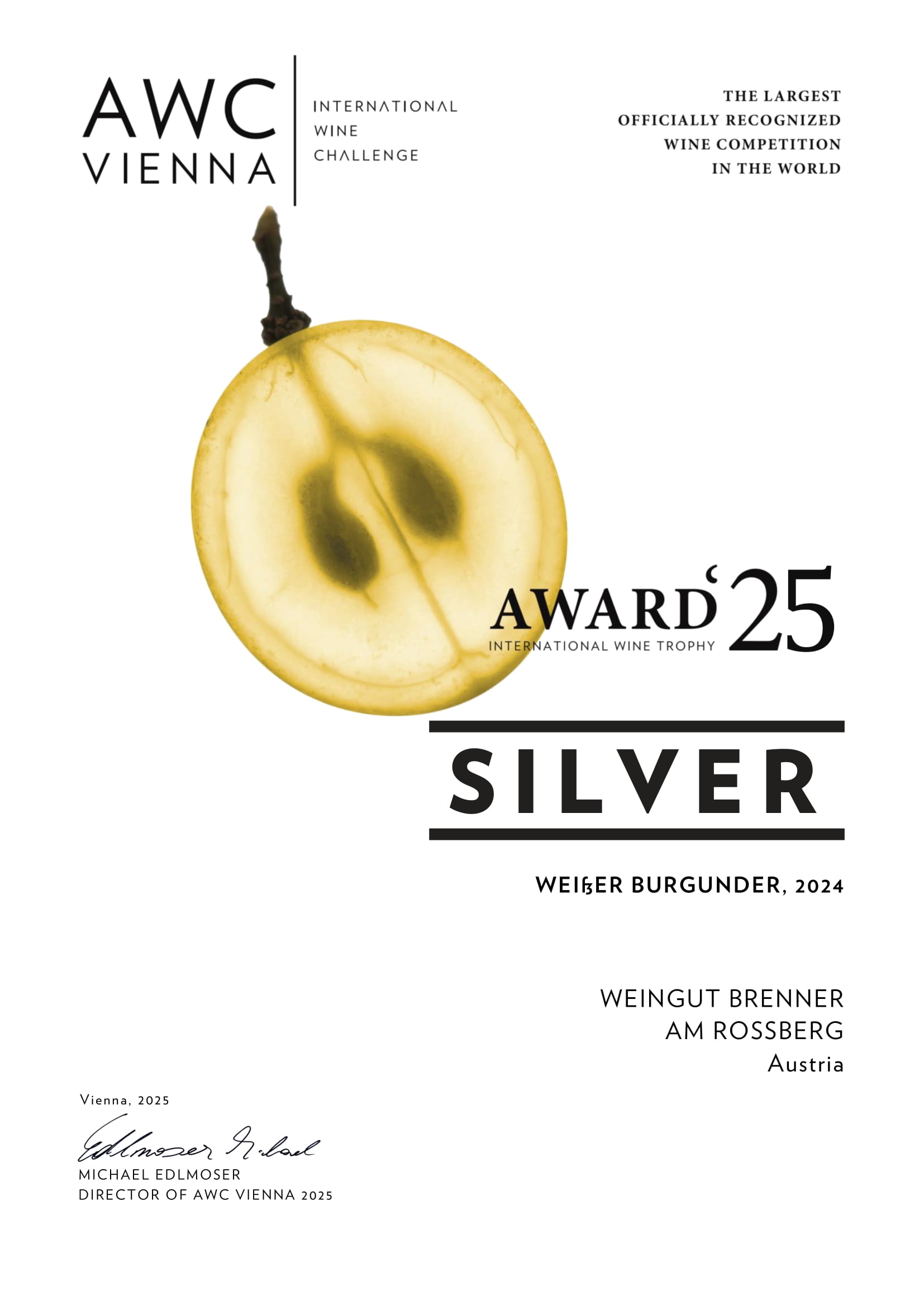 Unser Grauburgunder Ried Rossberg 2023 wurde bei der Landesweinbewertung 2025 ausgezeichnet – ein großer Moment für uns und eine schöne Bestätigung unserer Leidenschaft.